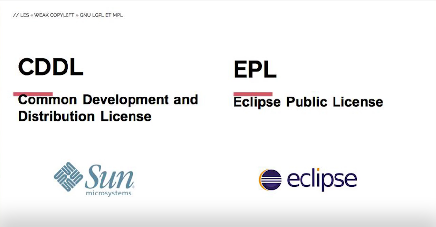À mi-chemin entre les licences à copyleft « for » et les licences permissives se trouve un autre type de licences, dites à copyleft « faible » , dont les principales sont la LGPL et la MPL.