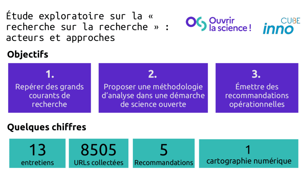 Nous espérons que cette étude aidera à mieux appréhender le paysage actuel des « recherches sur la recherche » et ses croisements avec les recherches et actions actuelles sur la science ouverte. Nous souhaitons remercier l’ensemble des personnes ayant accepté de participer aux entretiens et à la relecture de ce rapport (cf. crédits). Une article en anglais sera bientôt accessible afin de faciliter un partage plus large de l’étude.