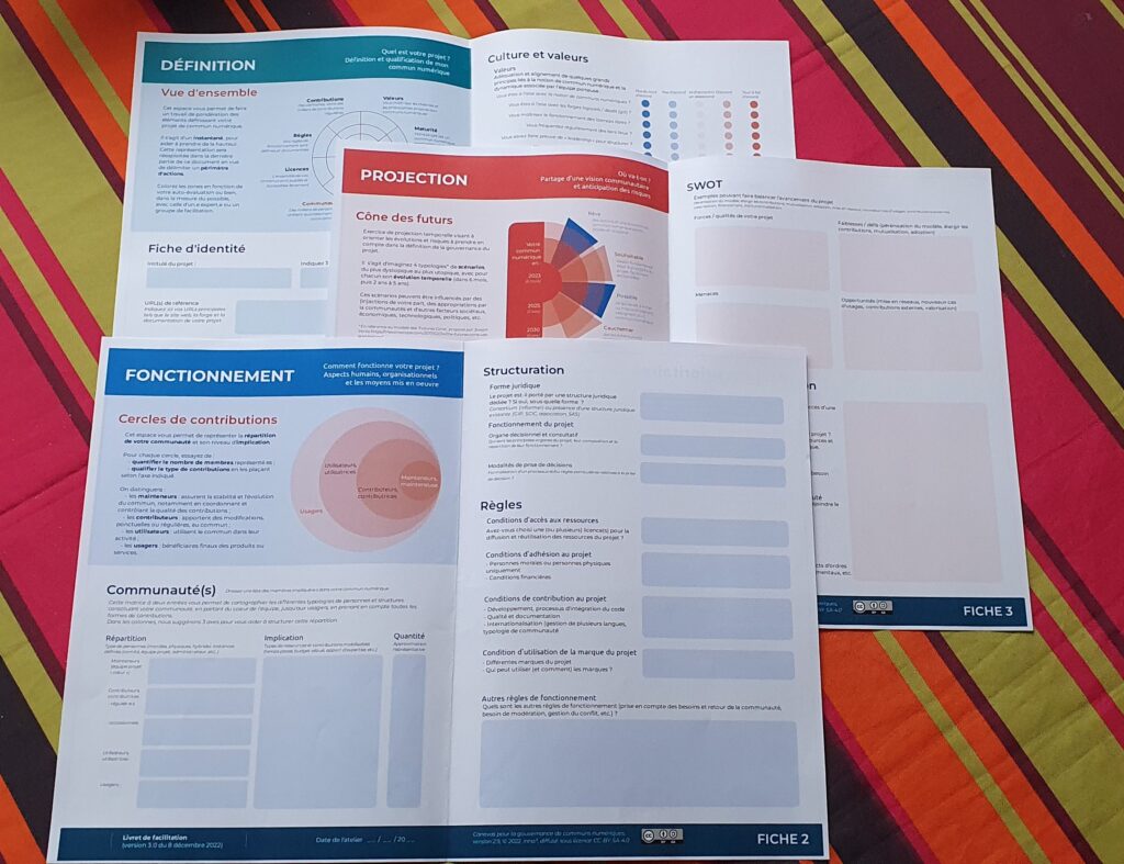 - Une série de 3 fiches permettant de s’approprier et matérialiser l’ensemble des enjeux sous-jacents à la gouvernance d’un projet de commun numérique ;