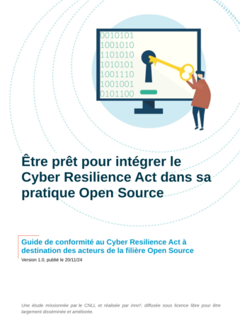 En 2024, le CNLL (Conseil National du Logiciel Libre) et inno³ ont travaillé ensemble sur la rédaction d’un guide avec pour objet d’accompagner les acteurs de l’Open Source dans la compréhension du CyberResilient Act (règlement sur la cyberrésilience). Ce guide est disponible sous licence libre favorisant ainsi son amélioration et sa dissémination.