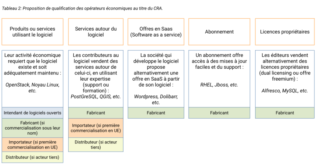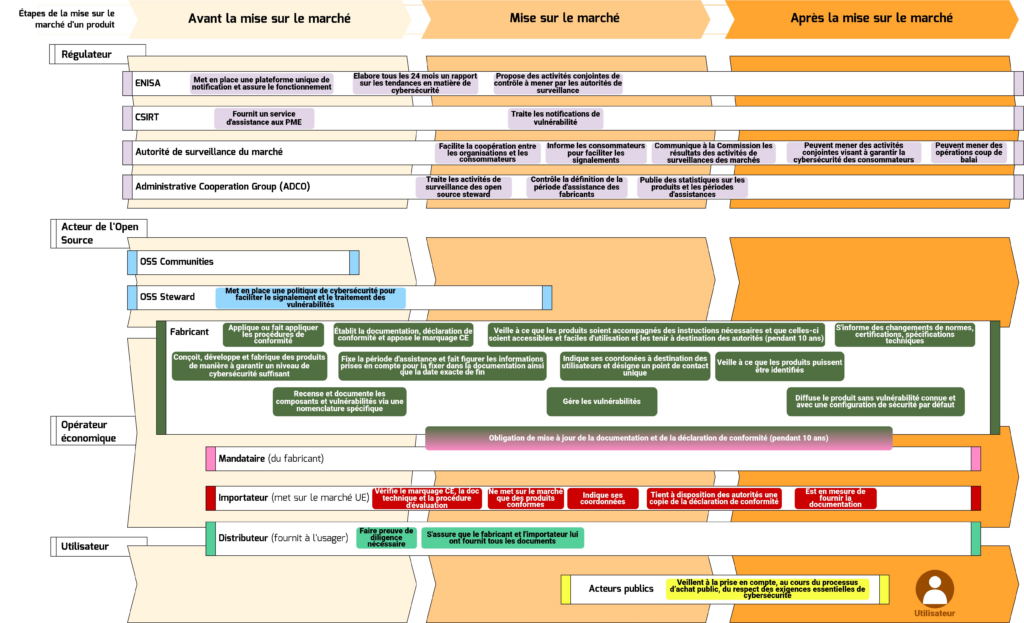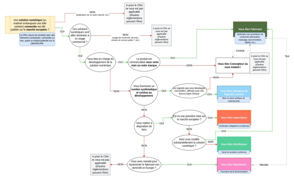 - Un logigramme permettant d’accompagner les acteurs de l’Open Source de se positionner sur les différents opérateurs économiques présentés dans le CRA.